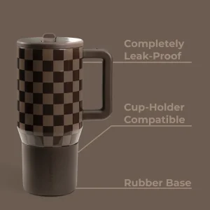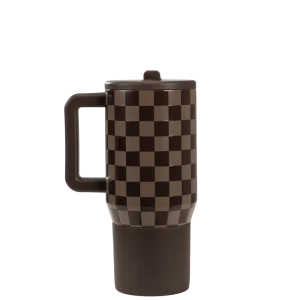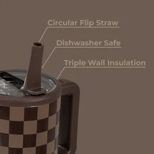 Built with the same trusted features as larger sizes, the Autumn Checkers travel tumbler includes a leakproof flip-straw lid for smooth sipping, a tapered base for cupholder compatibility, and an ergonomic handle for easy carrying. A removable silicone boot protects the insulated bottle and surfaces from scratches, while the dishwasher-safe body ensures quick, convenient cleaning.