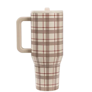 The HydroJug Traveler 32oz in Blair brings classic plaid style to everyday hydration. With a cream base and brown plaid pattern, this mid-size tumbler combines classic style with everyday performance – perfect for commutes, office days, or quick workouts.