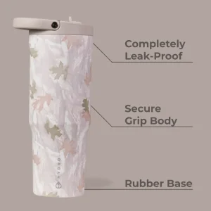 Crafted from 18/8 stainless steel with triple-wall insulation, the Camo tumbler keeps drinks cold for hours. A protective rubber base enhances durability and stability, while the dishwasher-safe design makes cleanup simple. Dependable and versatile, it’s hydration designed for endurance both on the trail and in everyday use.