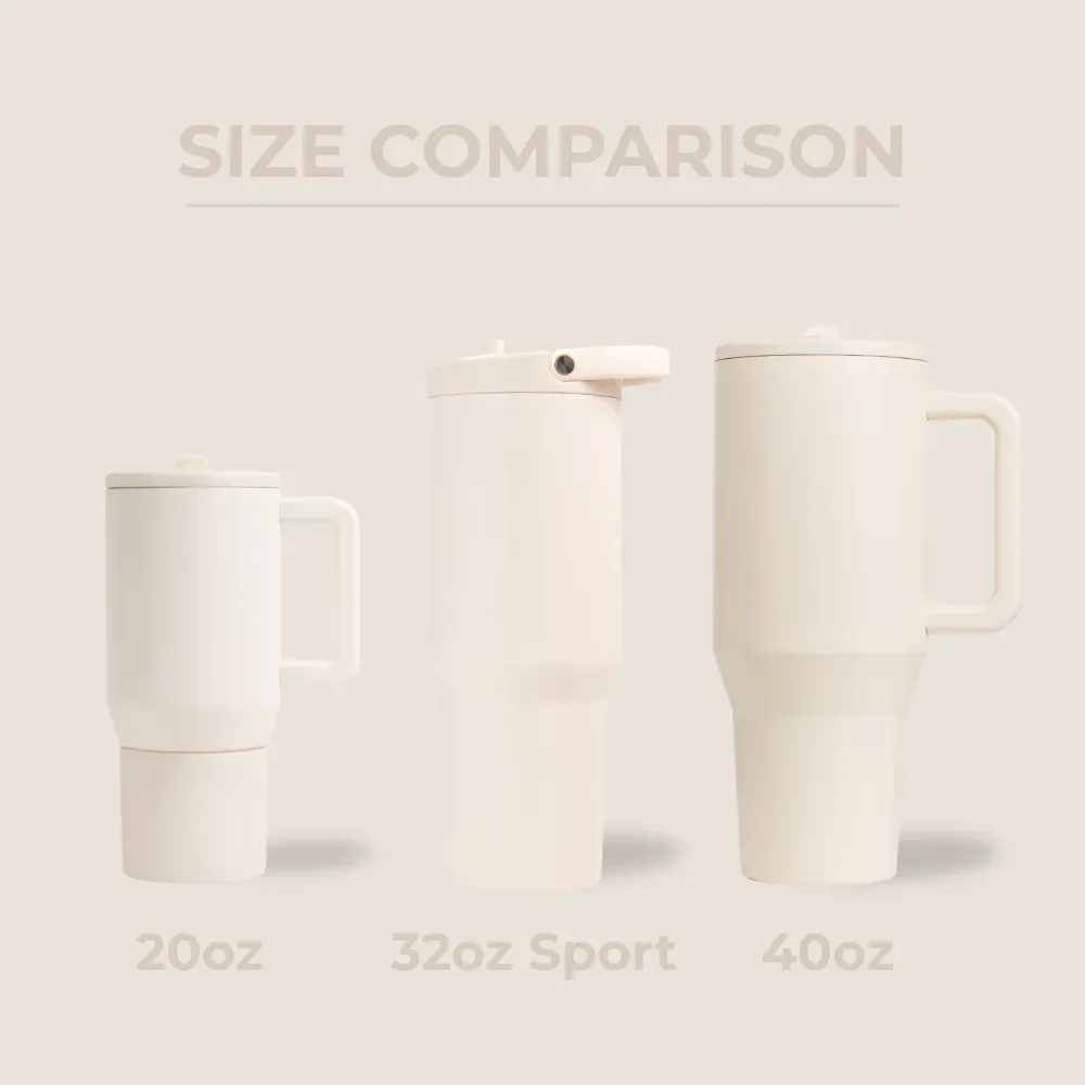 The 32oz size delivers the perfect balance – large enough to reduce refills through busy days, yet light and portable for on-the-go hydration. Made from 18/8 stainless steel with triple-wall insulation, the Cream tumbler keeps drinks cold for hours, and its dishwasher-safe design makes cleanup simple.