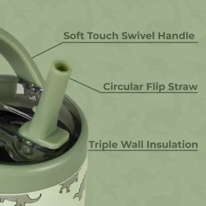 Made from 18/8 stainless steel with triple-wall insulation, it keeps drinks cold for hours, while the dishwasher-safe body makes cleanup quick and easy. Tough enough for everyday use and playful enough for kids, Dinosaur insulated bottle is hydration designed for little adventurers and peace of mind for parents.