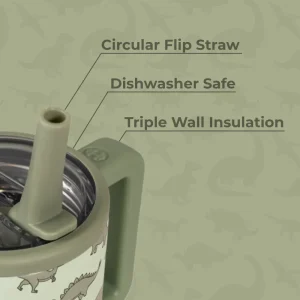 Kid-friendly features include being completely leakproof with the straw down, a hygienic circular flip straw that’s easy to sip from, and a removable silicone boot to protect both the insulated water bottle and household surfaces. Fun for kids and practical for parents, it’s hydration built for everyday adventures.